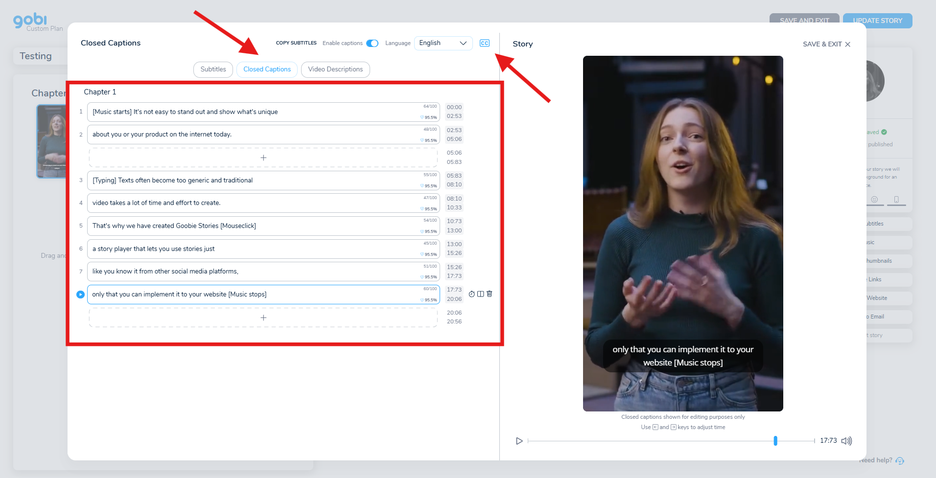 Undertekster gjør stories tilgjengelige for brukere som ikke kan høre lydsporet, eller som foretrekker å lese.