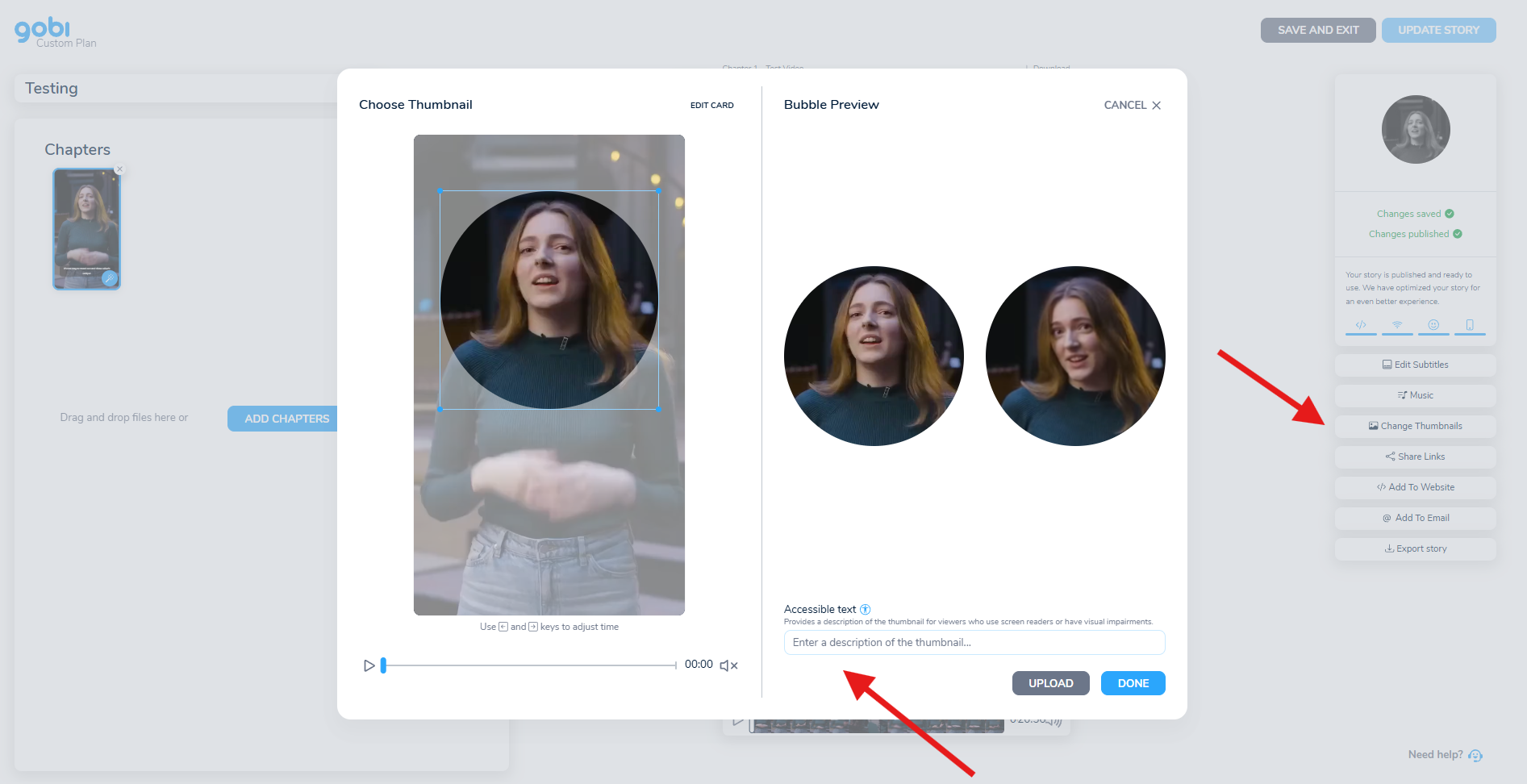 - Legg inn en alt-tekst for thumbnailen, finn "Change thumbnail" i venstre menu